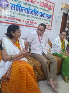 उत्कृष्ट साहित्यिक पुस्तकों के प्रकाशक साहित्यांजलि प्रकाशन प्रयागराज द्वारा विगत कुछ महीने से चल रही साहित्यकार सत्कार आपके द्वार योजना के अन्तर्गत आज नगर की दो ख्यातिप्राप्त साहित्यकार श्रीमती विजय लक्ष्मी विभा और डॉ उषा मिश्रा को प्रकाशन की ओर से साहित्य भारती सम्मान प्रदान किया गया।